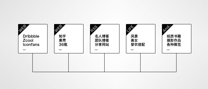 人们每谈到设计很自然的就会联想到创意、想法。作为设计师,好像我们的大脑里就理所应当地充满了各种创意,然而这些创意是本来就存在于大脑里的吗?显然不是。有人说创意来自冥想,我不否认有些天赋超人的设计神人可以通过冥想产生内容,但是对于非神设计师来说,冥想只是一个将脑海中的旧有内容进行重新组合并且呈现出来的一个方法。所以创意的内容其实不是来自冥想,而是来自设计师平时的积累,积累的越多,设计知识越丰富,创意和想法也就越多。经常听到这样的话:作为一个设计师想要提高水平,就要多看多思考多实践。于是很多人把业余时间都投入到无尽的图库之中,试图以此提高自己,但是在被各种优秀的设计作品吸引的同时,往往忽略了更为重要的知识管理。